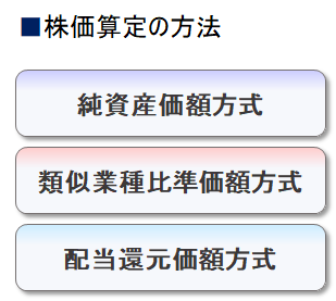 - 株価算定方法は、純資産価額・類似業種比準価額・配当還元価額の3つある